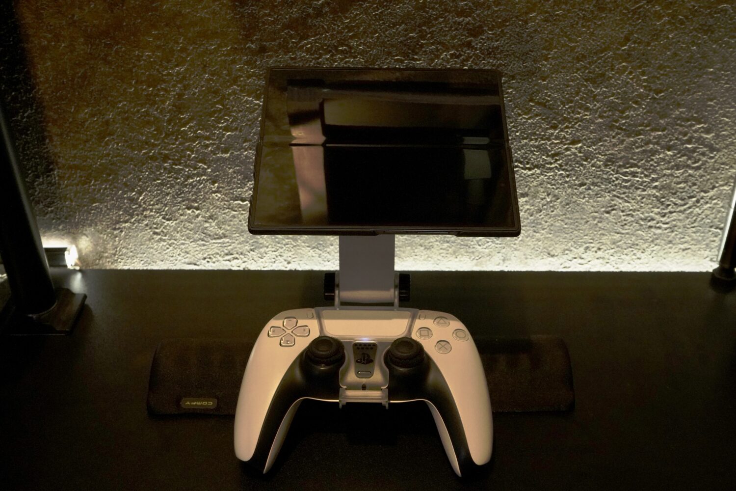 Fold7にBluetoothでPS5のDualSenseをペアリングして、マグネット対応のスマホクリップでFold7をコントローラーに装着しています。これで持ちやすさが格段に上がります。