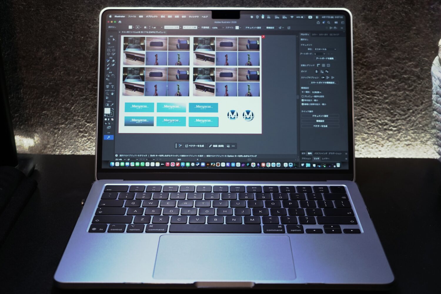 グラフィックデザイナーとして毎日Illustratorを使っているぼくが(使用機:M5 MacBook Air 32GB)、「MacBook AirでIllustratorの仕事ができるのか」という疑問に実測データで答えます。乗り換えの経緯や本体レビューはこちらの記事に書いたので、この記事はIllustrator実務に絞って書きます。